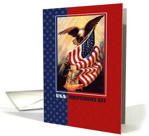 | Artist Notes: | Send your love and 4th of July wishes to your family and friends with this Vintage Bald Eagle with US Flag design greeting card. Personalize the inside greeting and add your own photo ( optional ). |