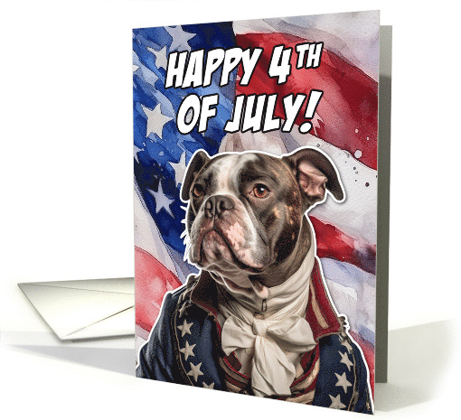 | Artist Notes: | A patriotic American Bully dressed in stars and stripes on an American flag watercolor background with the text 'Happy 4th of July!'. The perfect card to send to for a Bully mom or dad to celebrate the birthday of America. |