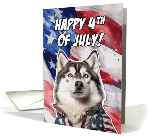 | Artist Notes: | A patriotic Siberian Huskie dressed in stars and stripes on an American flag watercolor background with the text 'Happy 4th of July!'. The perfect card to send to for a Huskie mom or dad to celebrate the birthday of America. |