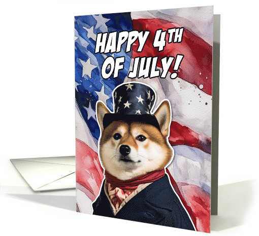| Artist Notes: | A patriotic Shiba Inu dressed in stars and stripes on an American flag watercolor background with the text 'Happy 4th of July!'. The perfect card to send to for a Shiba Inu mom or dad to celebrate the birthday of America. |