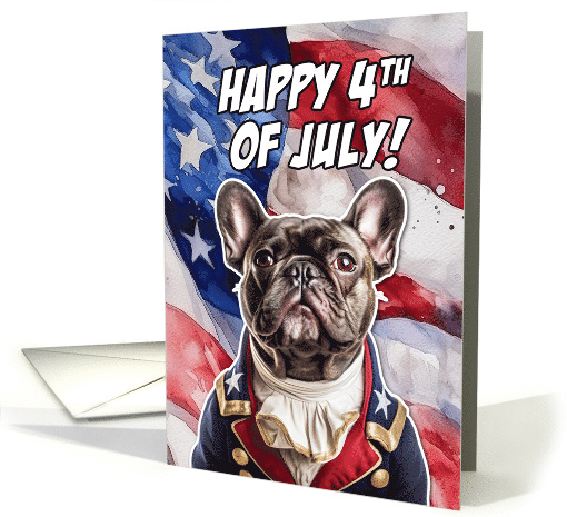 | Artist Notes: | A patriotic French Bulldog dressed in stars and stripes on an American flag watercolor background with the text 'Happy 4th of July!'. The perfect card to send to for a Frenchie mom or dad to celebrate the birthday of America. |