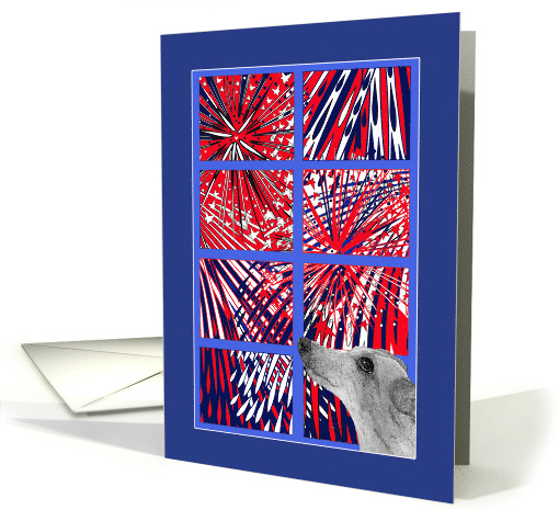 | Title: | Happy 4th July, greyhound dog & fireworks card |