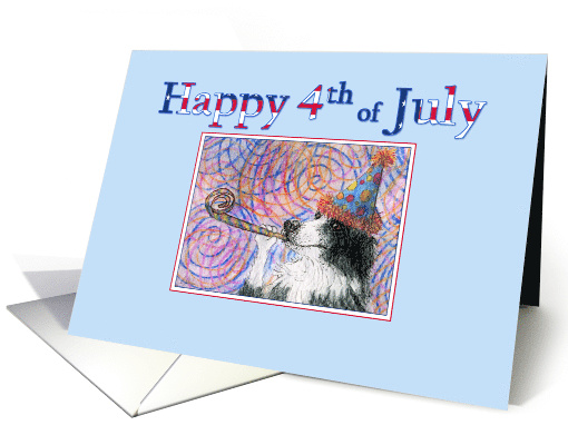 Title: | Happy 4th of July, border collie dog in a party hat |