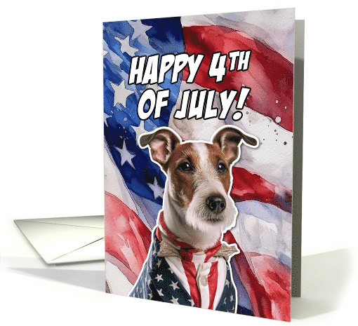 | Artist Notes: | A patriotic Fox Terrier dressed in stars and stripes on an American flag watercolor background with the text 'Happy 4th of July!'. The perfect card to send to for a fox terrier mom or dad to celebrate the birthday of America. |