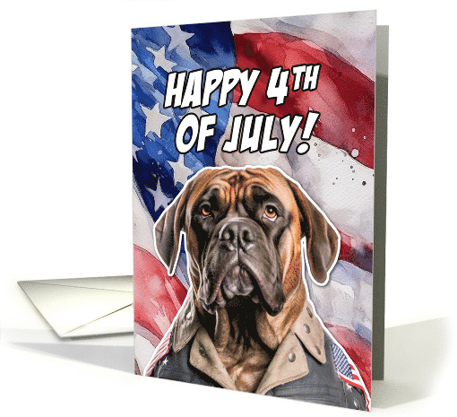 | Artist Notes: | A patriotic Boerboel dressed in stars and stripes on an American flag watercolor background with the text 'Happy 4th of July!'. The perfect card to send to for a boerboel mom or dad to celebrate the birthday of America. |