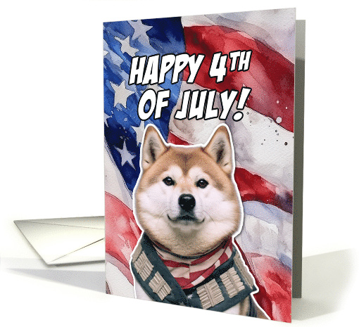 | Artist Notes: | A patriotic Akita dressed in stars and stripes on an American flag watercolor background with the text 'Happy 4th of July!'. The perfect card to send to for an akita mom or dad to celebrate the birthday of America. |