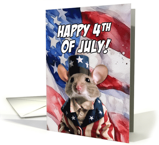 | Artist Notes: | A patriotic Mouse dressed in stars and stripes on an American flag watercolor background with the text 'Happy 4th of July!'. The perfect card to send to for a mouse mom or dad to celebrate the birthday of America. |