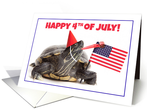 | Artist Notes: | Wish anyone a Happy 4th of July with this totally cute red-eared slider turtle in a party hat holding a flag! |