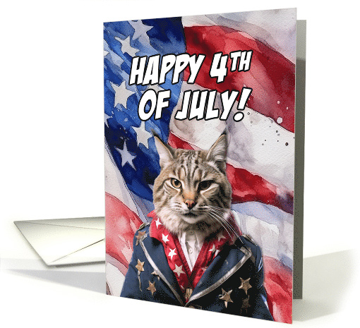 | Artist Notes: | A patriotic Bobcat dressed in stars and stripes on an American flag watercolor background with the text 'Happy 4th of July!'. The perfect card to send to a bobcat mom or dad, a sanctuary or a rescue center to celebrate the birthday of America. |