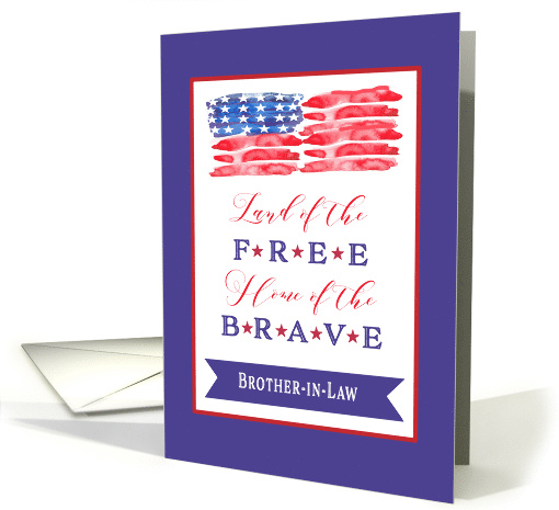 | Artist Notes: | Wish your brother-in-law a Happy Fourth of July with this modern card in the colors red, white and blue. Watercolor stripes and white and red stars. You can personalize and change all text inside the card. |