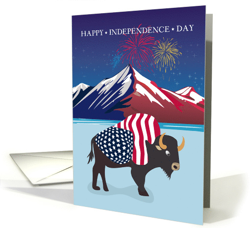| Artist Notes: | Illustrated Happy Independence Day for the fourth of July. A mountain peak with stars and sparkles in the sky. The mountain is red, white and blue. Below on the plains area is a bison that has a blue star field with red and white stripes. Fireworks in the night sky add to the patriotic whimsical fun. |
