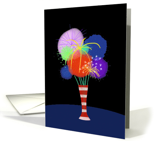 Artist Notes: | Fun Fourth of July card to send to your friends and family. The vase is exploding with flowers that resemble fireworks. |