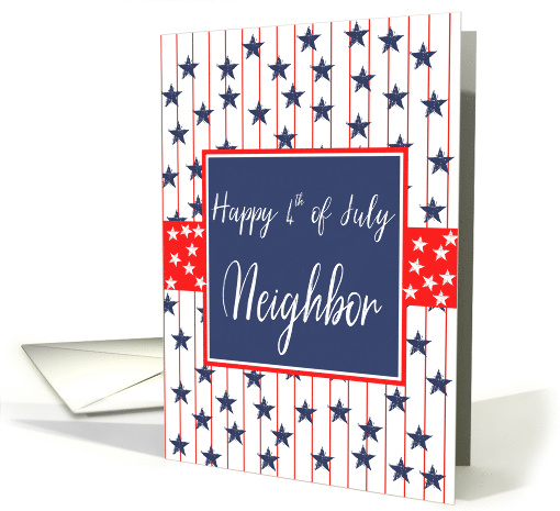 | Artist Notes: | Neighbor 4th of July Blue Chalkboard. Stars and stripes to celebrate independence day. Another Studio Porto Sabbia creation! This 4th of July Chalkboard on Stripes card is also available for all US states and for many different (family) relations. |