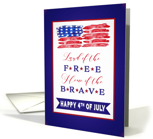 Title: | Happy 4th of July, Land of the Free, Home of the Brave, Watercolor |