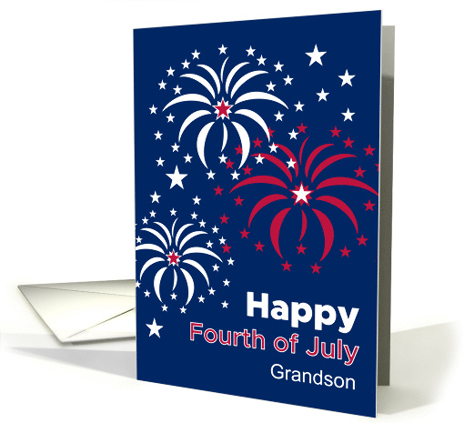 Grandson Fourth of July Modern Fireworks Red White and Blue Custom