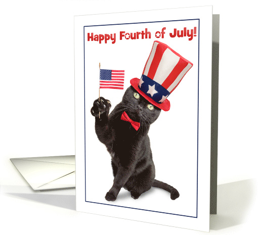| Artist Notes: | This adorable black cat in an Uncle Sam hat and bow tie holding the American flag is a super cute way to wish anyone a Happy Fourth of July! |