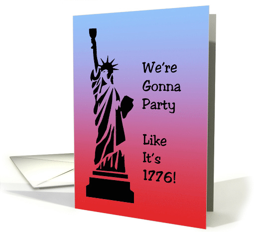 | Artist Notes: | Humorous Fourth of July card with a stylized image of the statue of liberty. She is holding a glass instead of the torch. The words, on a blue to red gradient background, say: We're gonna party like it's 1776! Inside says: Happy Fourth of July |
