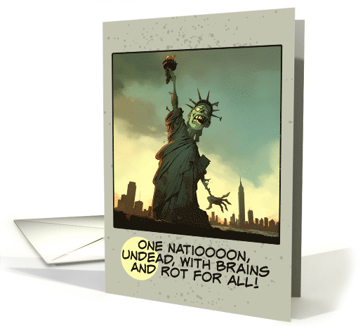 Zombies are hotter than ever. A zombie card is perfect for someone who'd find it humorously dark, like horror fans (enthusiasts of horror movies, books, and TV shows, especially those who love the zombie genre (Walking Dead, Night of the Living Dead, World War Z), Gamers: People who enjoy zombie-themed video games like Resident Evil, Dead Rising, Left 4 Dead, or The Last of Us, comic book lovers, Medical Professionals: Surprisingly, some doctors, nurses, and lab techs appreciate the morbid humor, given their proximity to life-and-death situations. Make someone happy with a zombie 4th of july card this year!