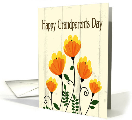 | Artist Notes: | Sweet Grandparents Day card with yellow and orange flowers in front of a wood background. Design © 2015 Julia Bryant. |