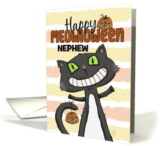 Happy Halloween Nephew Black Cat with Jack o lantern MEOwloween