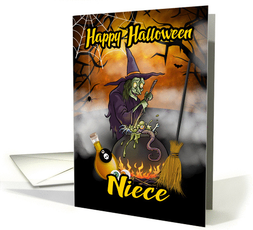 Halloween Birthday card with a witch stirring up some trouble, or something tasty if you are that way inclined, with lots of eye of newt, some hemlock for luck, a fun witch card great for any age.
