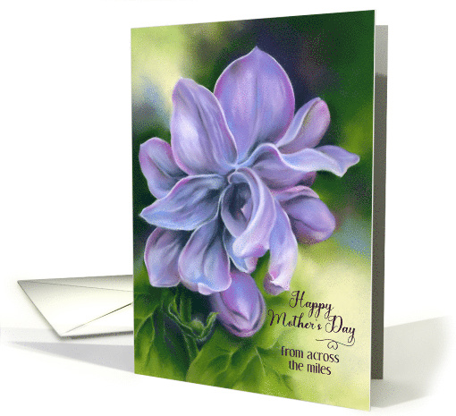 Even when you can’t be there to celebrate Mother’s Day, you can still send a sweet greeting from across the miles with this customizable card that is decorated with lovely late spring lilac flowers and leaves in soft pastel shades of blue, purple and green.