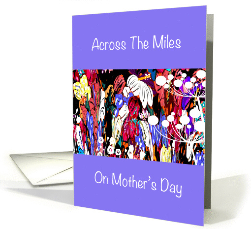 Artist Notes: | Across the miles on Mother's Day, multi colored floral design, reds, lavender, white, a bright & cheerful card for Mother's everywhere who are miles away from their children. |