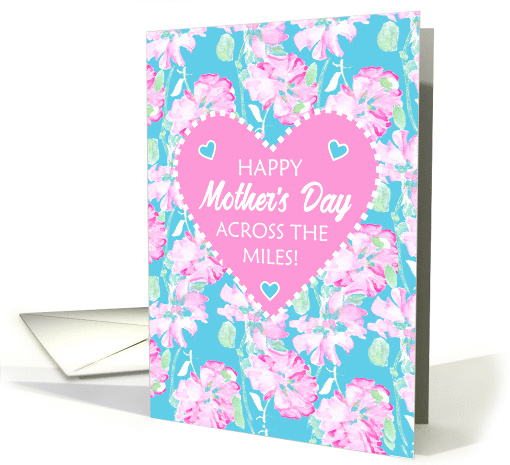 Title: | Mothers Day Across the Miles with Heart and Pink Roses on Sky Blue |