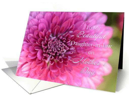 A Mother's Day card for a beautiful Daughter-in-law featuring a close up of a pink dahlia.
