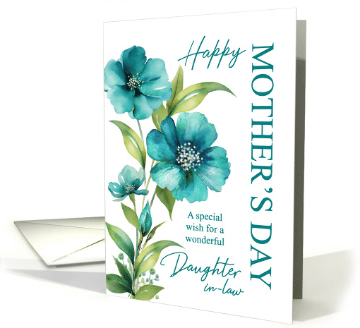 Happy Mothers Day to Daughter In Law. Cute and cheerful blue flax flowers in minimalist watercolor painting painting with modern trendy typography.