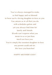 Charming greeting with a country flare. Bouquet of country flowers in a mason jar. See other categories including invitations, thank you, and etc. with same image. Card front says, Daughter-in-love, representing the family relationship, Daughter-in-law.It