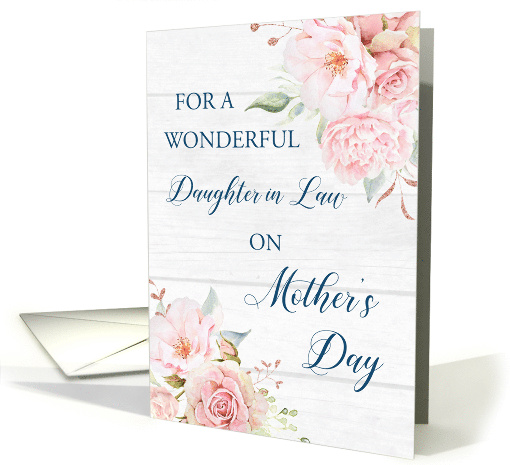 Mother's day card for daughter in law with charming soft pink vintage floral arrangements and rustic wood details.