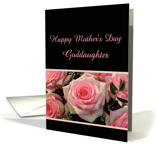 Happy Mother's Day to your Goddaughter. Big roses in various shades of pink on a classic black card. Available for other family members and in some non english languages. Created by Studio Porto Sabbia