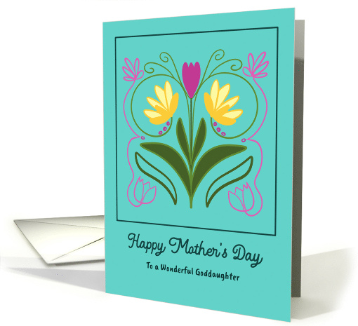 Celebrate the timeless beauty of motherhood with this Art Nouveau-inspired Mother's Day card for your Goddaughter. The delicate elegance of pink and yellow flowers, twining vines, and ornamental swirls makes this a truly special keepsake.