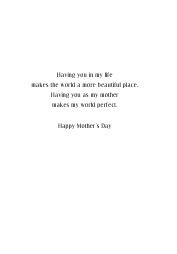 This fresh, modern card wishes your special mom a Happy Mother's Day with a burst of bright colorful flowers and a simple yet sweet sentiment.