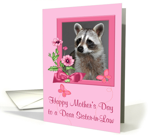 Mother's Day To Sister-in-Law, portrait of a raccoon in flower frame
