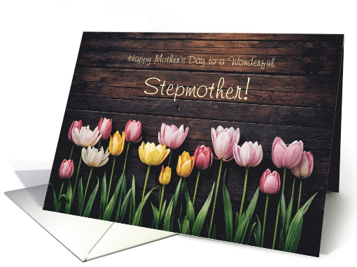 Stepmother or Stepmom Happy Mothers Day Cute Tulips Barn Wood Custom
