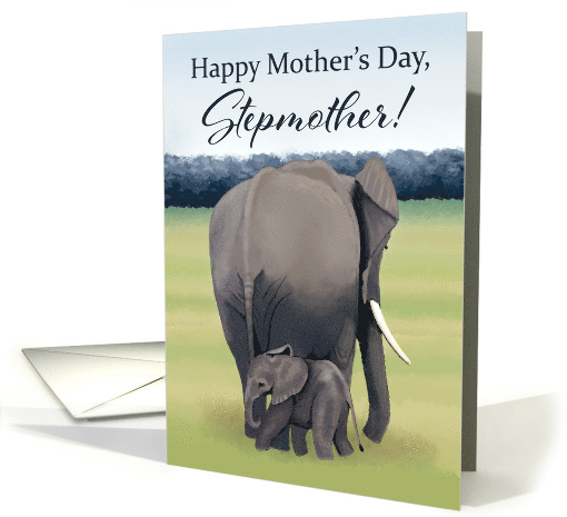 This "Happy Mother's Day, Stepmother!" card features a digital watercolor painting of a mother and baby African elephant, and a poem celebrating the love, strength, wisdom and grace of mothers everywhere.