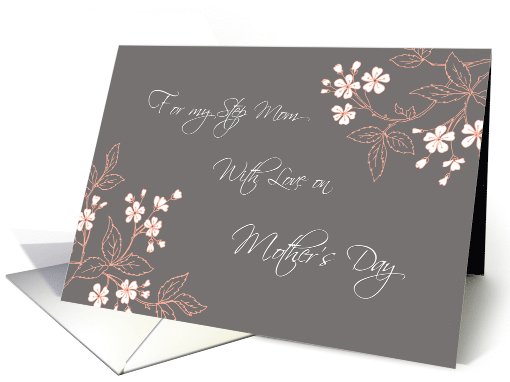 Happy Mother's Day card for step mom in elegant grey, peach and white delicate flowers pattern.