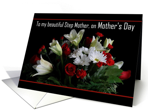 Sending your Step Mother, Happy Mother's Day love and best wishes with this beautiful digital oil painted bouquet card with a black background, will touch her heart and make her smile. Inner verse can be used or add sentiments of your own. © 2014 SmudgeArt Card Shop