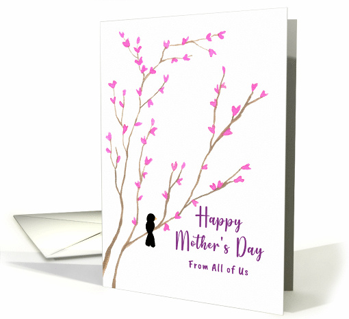 Happy Mother's Day From Group Black Bird Pink Blossoms Floral Painting