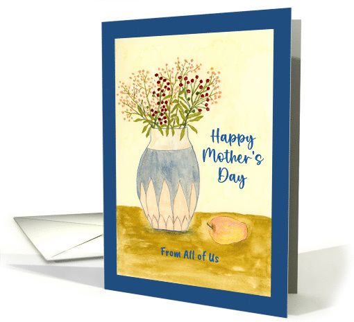 Celebrate someone wonderful from a group on Mother's Day with this charming card featuring a delicate watercolor painting of a pastel-hued vase brimming with tiny wildflowers, accompanied by a ripe apple resting beside it.