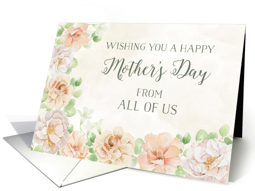 Soft peach pink and white flowers create a lovely frame for this happy mother's day from all of us card.
