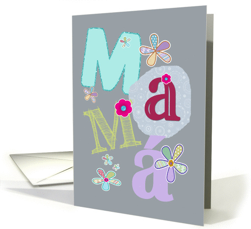 mamá, happy mother's day in Spanish, letters and flowers, teal
