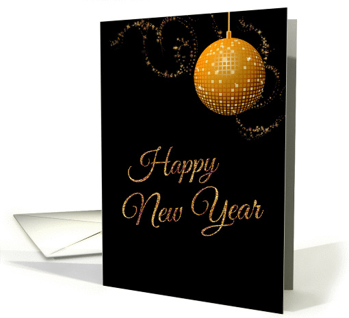 Celebrate the New Year with this stylish card featuring gold mirror ball and glittery gold sparkles on black background. (Card does not have any real glitter.) Graphics byİZaZa/Scrap and Tubes