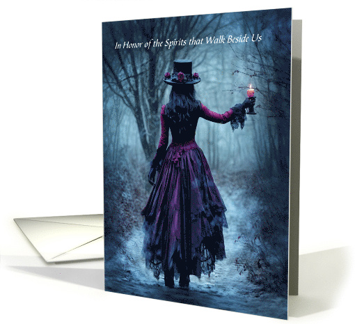 Samhain Woman with Candle on a Misty Path through The Woods Custom