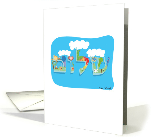 A fun and colorful Rosh Hashana card with the Hebrew word Shalom (Which means both hello and peace) on the cover.