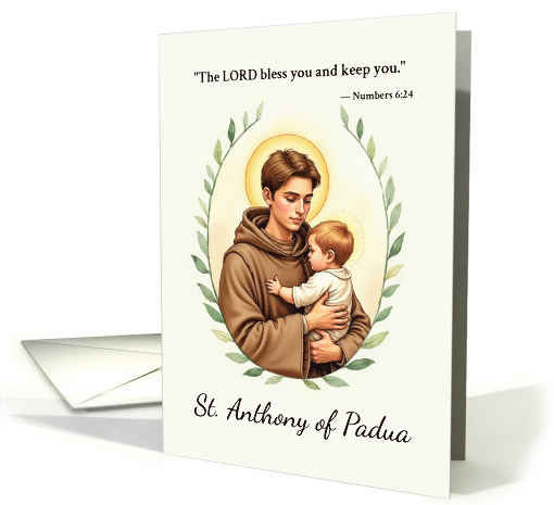This beautifully illustrated card features St. Anthony of Padua holding the Christ Child, accompanied by a scripture reading on the front. The serene image, set against a soft background, makes it a perfect choice for various occasions, including birthdays, anniversaries, Confirmation, or as a thoughtful gesture of encouragement. Inside, the message offers blessings of peace, grace, and inspiration. Ideal for sending to family, friends, or parish members, this card serves as a heartfelt reminder of St. Anthony’s faith and intercession. His Feast Day is June 13.