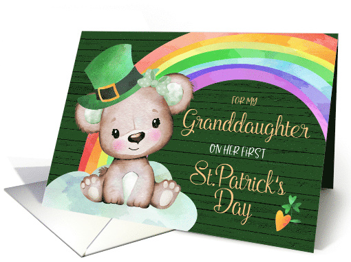 A cheerful teddy bear and colorful, lucky rainbow make this an adorable first St. Patrick's day card for the special little granddaughter in your life.