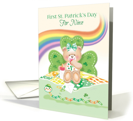 | Artist Notes: | A wiggly toy, a large shamrock, a rainbow and a cute teddy, all make up the sweet illustration on this First St. Patrick's Day for Niece. |